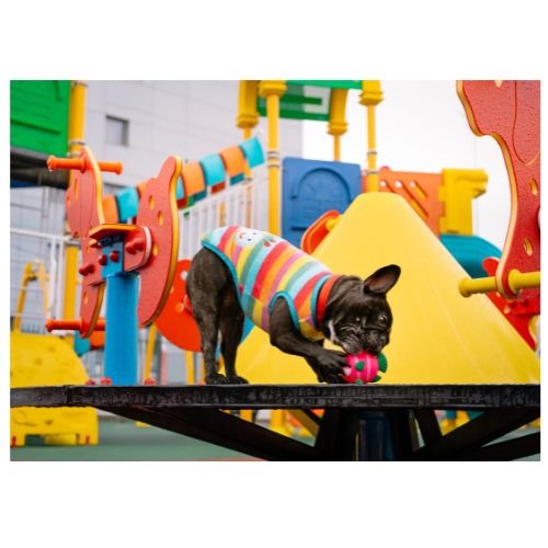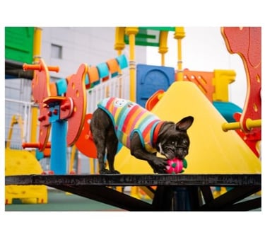 Meu cachorro adora o parquinho! Ele fica super feliz enquanto espera pelo banho e tosa.